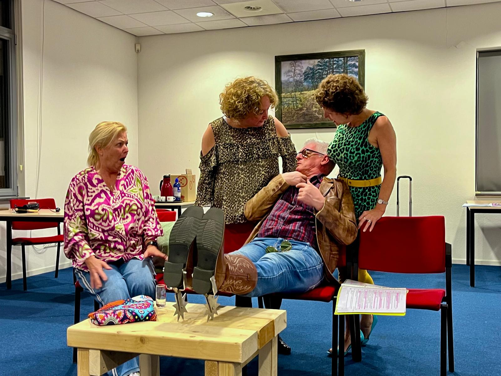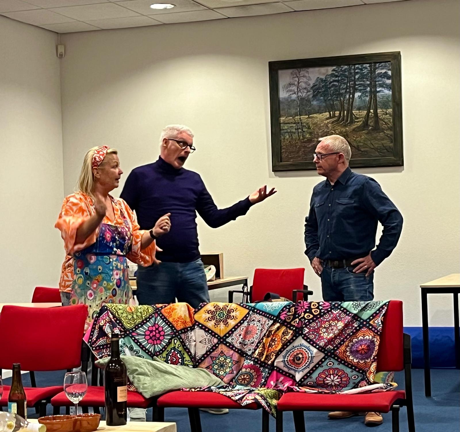 Enthousiast en 18 jaar of ouder? Loop eens binnen tijdens de repetities. Onze repetitieruimte vind je in het dorpshuis 't Perron, Onder leiding van onze regisseur André Verhees wordt met plezier en enthousiasme gewerkt aan het stuk "Kamer te huur"Foto's van de repetities.